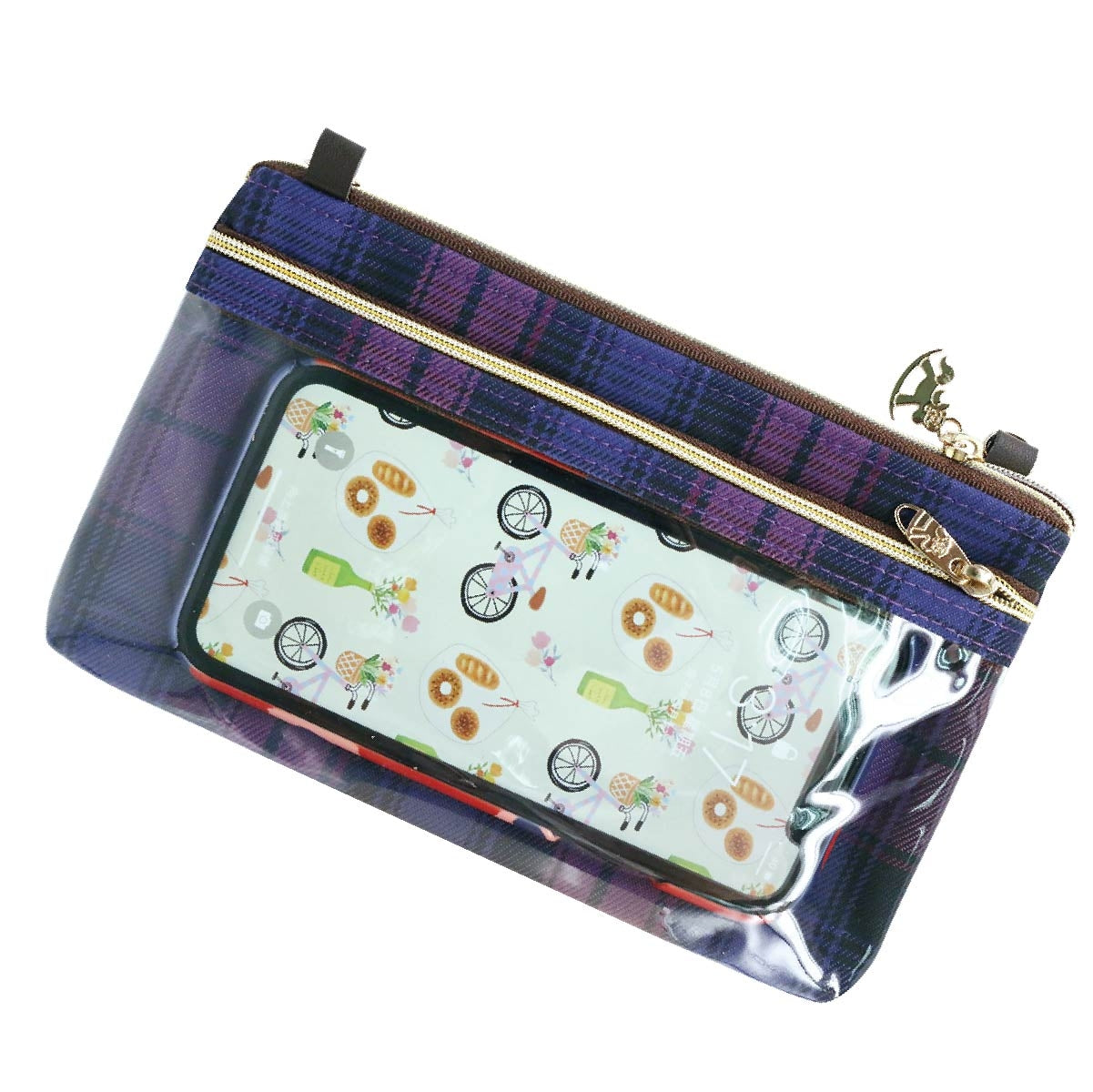 Lightweight crossbody bag with adjustable shoulder strap. Transparent section for phone (can fit phones up to 6.7 inches diagonal). Storage dividers inside. The outer waterproof material is heavy-duty and wear-resistant.